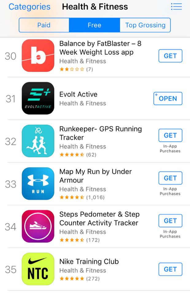 Our EVOLT ACTIVE APP made Top 40 of the most downloaded health and fitness apps on the Apple Store over the weekend!